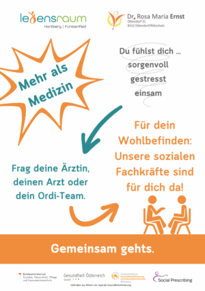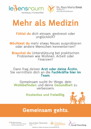 Seit Februar 2023 wurde in der Allgemeinmedizinischen Praxis Dr. Rosa Maria Ernst über eine Projektförderung der Gesundheit Österreich GmbH Social Prescribing angeboten.